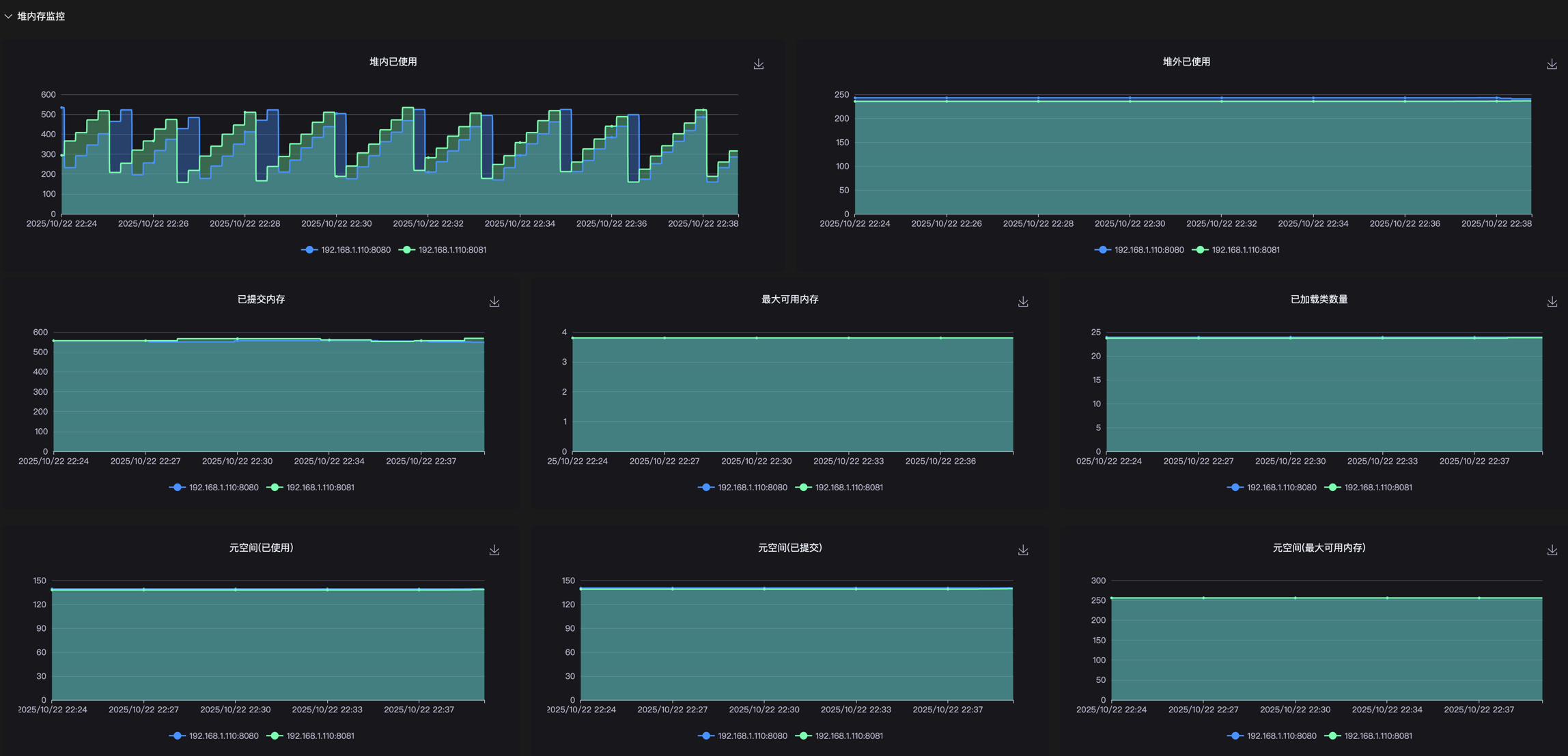 监控JVM堆内存使用情况,预防内存溢出和优化内存配置。实时显示堆内存的分配、使用和回收情况,帮助识别内存泄漏、大对象占用、内存碎片等问题,指导堆内存大小设置和垃圾回收策略选择。